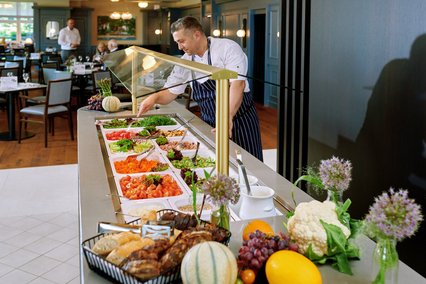 In unserem Restaurant Hanseatic mit Sommerterrasse und herrlichem Elbblick begrüßen wir Sie zum Mittagessen. Unser Gastronomieleiter Florian Franken und sein Team verwöhnen Sie mit regionalen und saisonalen Spezialitäten. Selbstverständlich sind unsere Speisen frisch und ernährungsphysiologisch ausgewogen. Gern berücksichtigen wir Ihre Sonderwünsche und besondere Kostformen (z.B. bei Diabetes mellitus). Zu einem hervorragenden Essen gehören erlesene Weine, die wir für Sie in unserem Keller bereithalten. Unser Team begrüßt Sie täglich von 8-18 Uhr in unserem Restaurant. Auch bieten wir, wie Sie es in einem First-Class-Hotel erwarten können, einen Roomservice an, der Sie und Ihre Besucher verwöhnt.